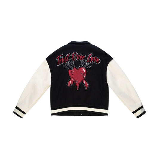 TRUST OVER LOVE VARSITY JACKET - Jet Black