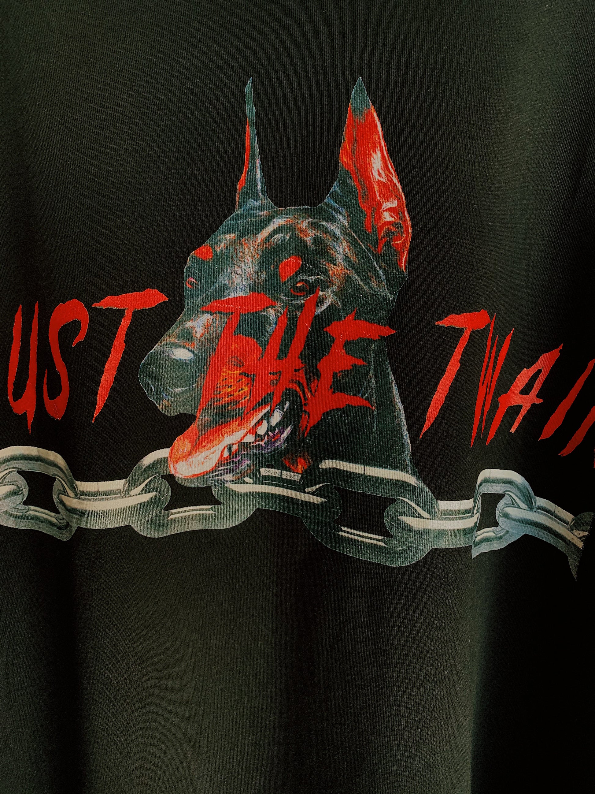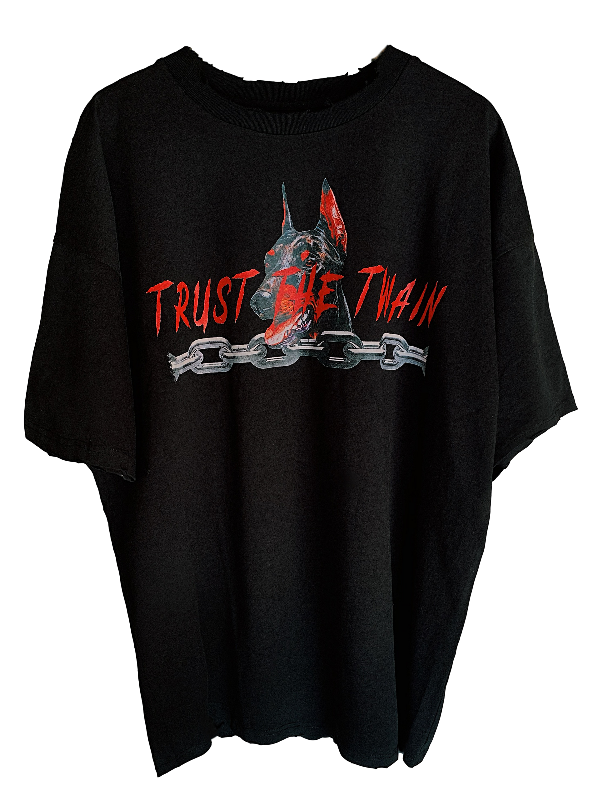 “Trust the Twain” Doberman and chain logo across front